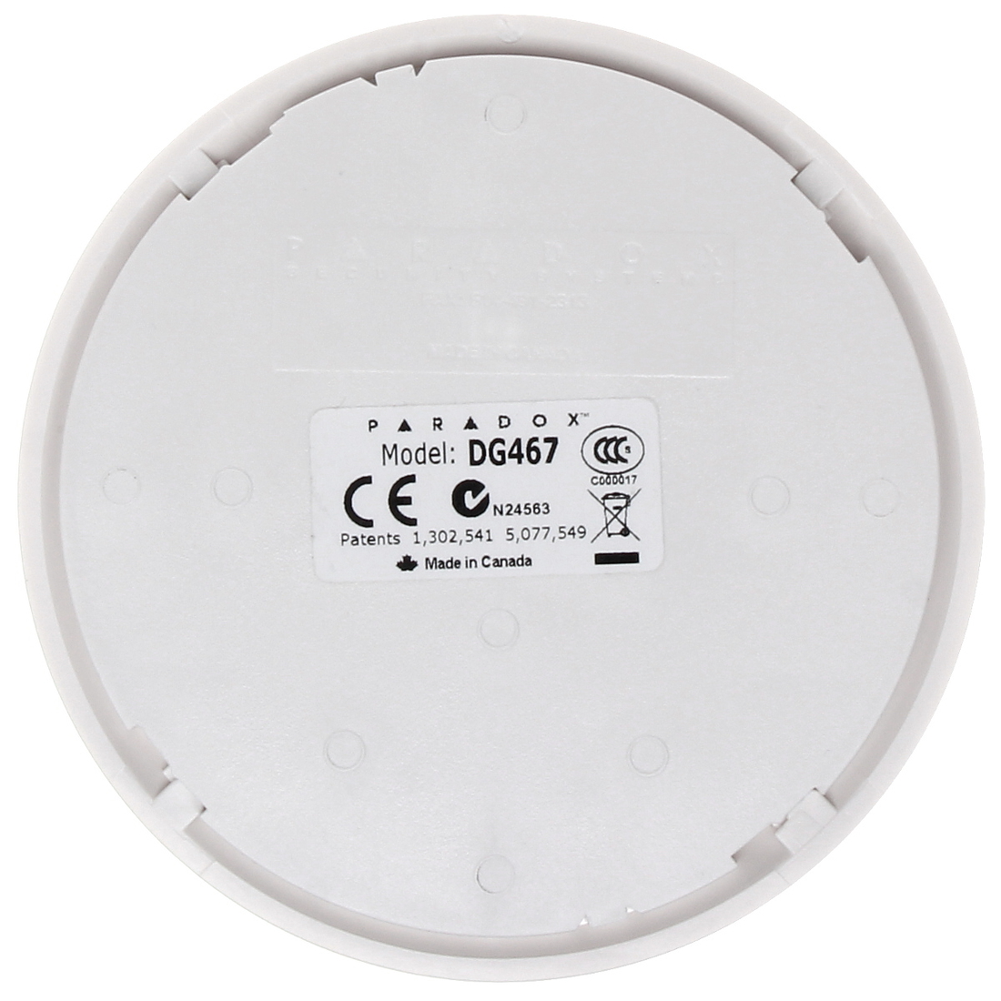 El sensor de movimiento para techo 360° de Paradox, modelo DG467, es un detector infrarrojo pasivo (PIR) de montaje en techo que ofrece cobertura total de 360 grados, usando detección digital y sensor de doble elemento para una alta precisión en interiores, ideal para salones o dormitorios, con opciones de conexión direccionable o convencional para sistemas Paradox y cobertura de hasta 11x6m, incorporando funciones anti-sabotaje y sensibilidad ajustable.